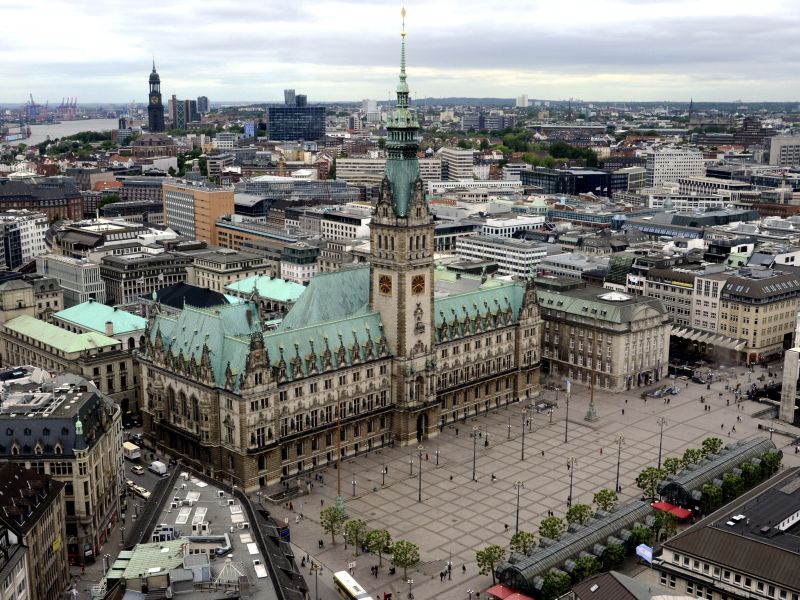 Das Hamburger Rathaus – erbaut 1886 bis 1897 – beherrscht mit seiner beeindruckenden Architektur das Zentrum der Stadt. Der prächtige Sandsteinbau ist Sitz des Senats und der Bürgerschaft.