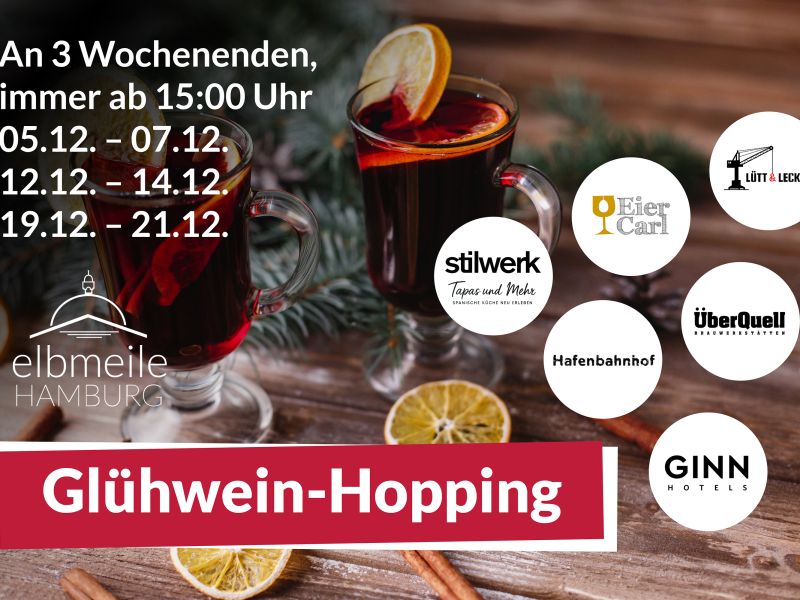 Im Winter wird die Elbmeile besonders stimmungsvoll: Beim Glühwein-Hopping entdecken Besucher neue Lieblingsorte, genießen die maritime Atmosphäre und probieren verschiedene Varianten. An den ersten drei Dezember-Wochenenden (jeweils Fr.- So.) lädt das Quartier – vom U-Boot-Museum am Fischmarkt bis zum Hafenmuseum Övelgönne – zum Rundgang ein. An mehreren Stationen „ÜberQuel“, „Eier Carl“, „Lütt & Lecker“, „Taps & Mehr im stilwerk“, „GINN Hotel & Bar“ und „Hafenbahnhof“ sammeln Teilnehmende Stempel und erleben die Vielfalt der Elbmeile.