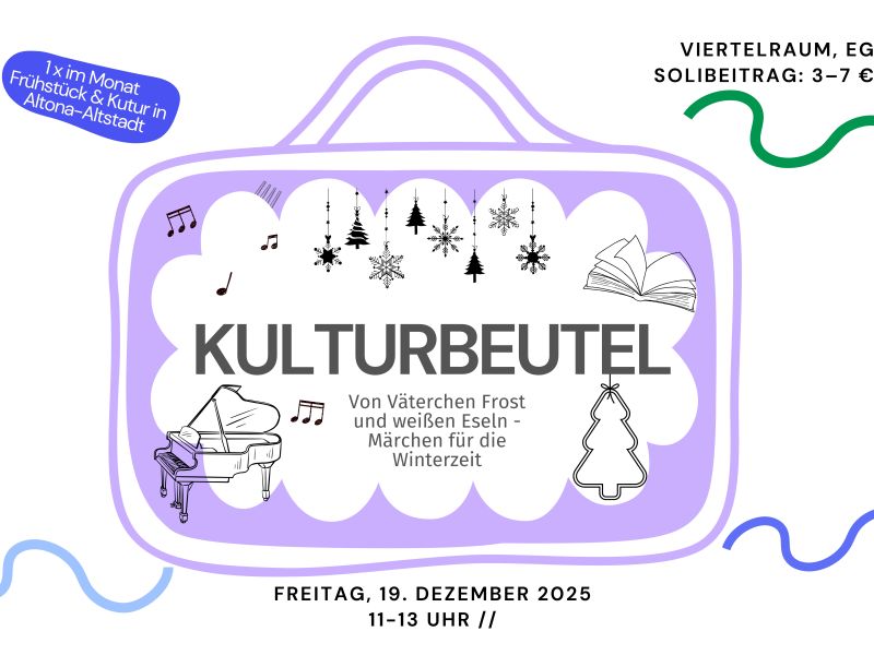 Das ist die Idee der Veranstaltungsreihe KulturBeutel, die monatlich im HausDrei stattfindet und zum entspannten Beisammensein einlädt. Dabei schaffen wir Raum für kulturellen Austausch, inspirierende Gespräche und neue Perspektiven.