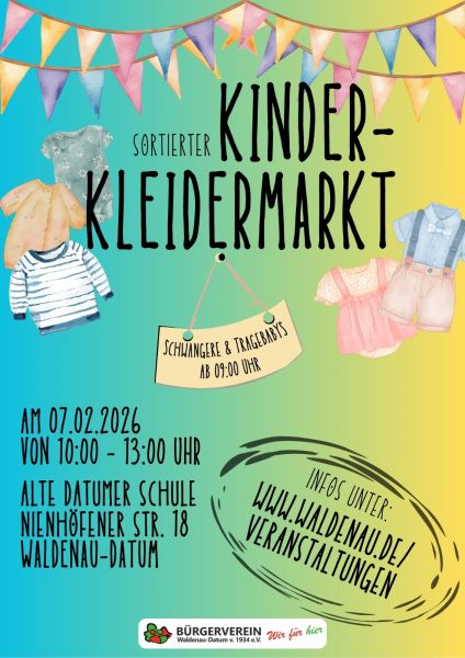 Der Bürgerverein Waldenau-Datum veranstaltet seinen 3. Kinderkleidermarkt.