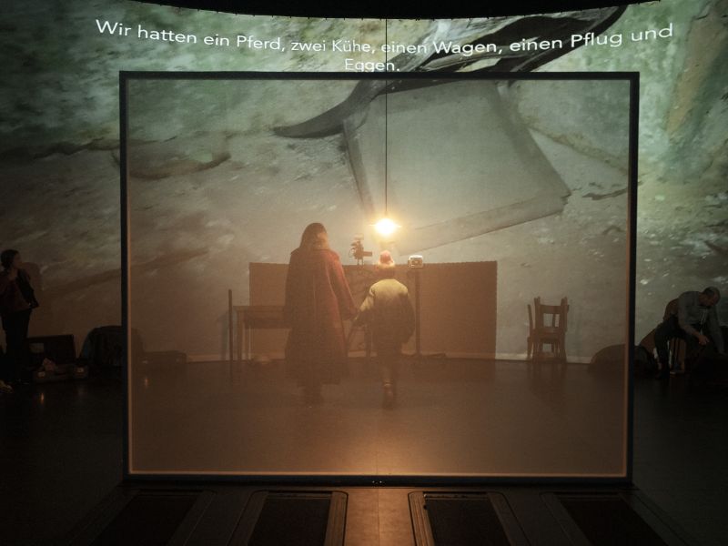 Im Februar 2024 reist Regisseur Gernot Grünewald zusammen mit Christiane Hoffmann und dem polnischen Autor Jarosław Murawski nach Różyna, um dokumentarisches Material für den Theaterabend in der Gaußstraße zu sammeln. Sie sprechen mit Zeitzeugen und Nachfahren der 1945 aus der Westukraine vertriebenen polnischen Familien, die heute im Dorf und im Haus der Familie Hoffmann leben. Gemeinsam mit dem Team untersucht Videokünstler Jonas Plümke entlang der Fluchtroute, wie sich diese gigantische Bevölkerungsverschiebung bis heute in Menschen, Häusern und Landschaften abbildet.