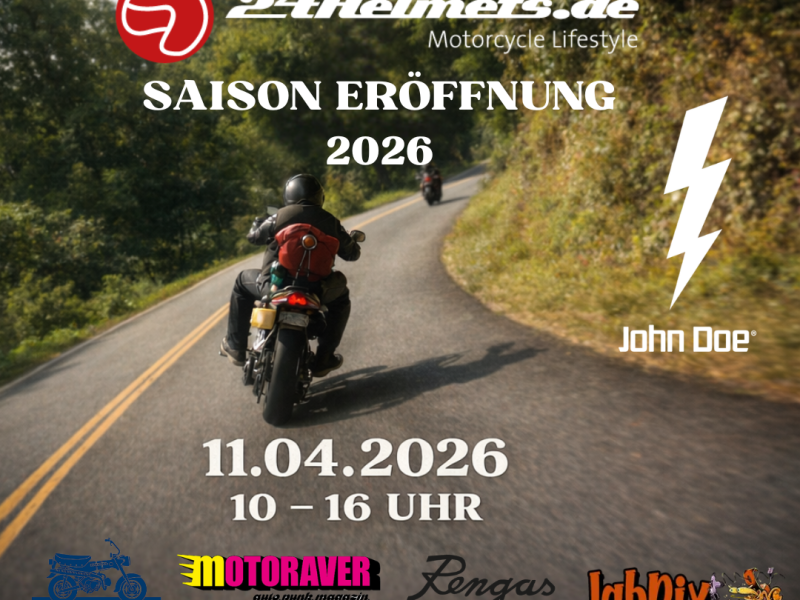 Gemeinsam mit JOHN DOE eröffnen wir von 24Helmets.de am Samstag, den 11. April 2026, offiziell die Motorradsaison in Hamburg.