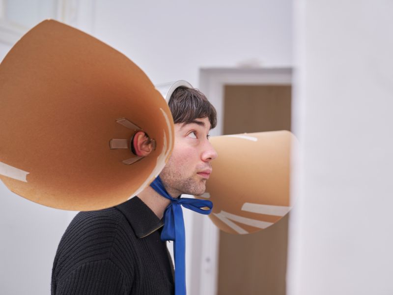 Unter dem Motto „Fließende Begegnungen und akustische Zwischenräume“ werden zunächst Klangarbeiten gezeigt, die sich mit dem Raum und der Außenwelt verbinden. Kuratiert wurde die Ausstellung von Marita Landgraf und dem ehemaligen Stipendiaten des Künstler:innenhaus Heiko Wommelsdorf. Sein Schwerpunkt sind raumbezogene Klanginstallationen.