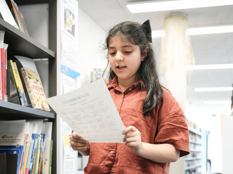 Den Buch-Bingo Bogen bekommt ihr während der Öffnungszeiten am Service.