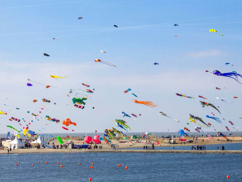 Die Watt’n Insel ist der perfekte Ort für dieses besondere Ereignis. Schon aus der Ferne kannst du die bunten Drachen am Himmel über Büsum sehen, die in den unterschiedlichsten Farben und Formen tanzen. Besonders beeindruckend sind die riesigen Standfiguren, die du hautnah erleben kannst. Die Drachenflieger freuen sich schon darauf, dir alles zu zeigen und deine Fragen zu beantworten – sei neugierig und komm vorbei!