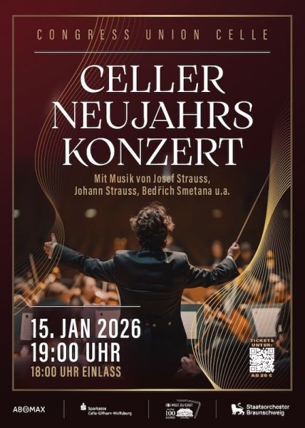 Erleben Sie das Celler Neujahrskonzert des Staatsorchesters Braunschweig am 15. Januar 2026 in der Congress Union Celle. Ein festlicher Abend voller Strauss-Klassikern, Operettenglanz und majestätischer Orchestermusik – eine Traditionsveranstaltung, die Vertrauen, Freude und Gemeinschaft in der Region stärkt.