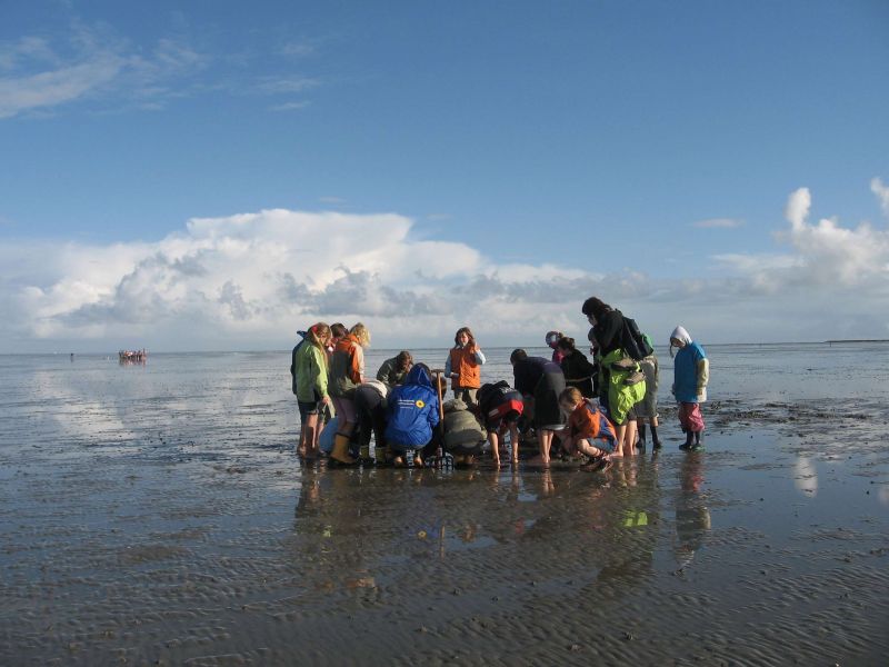 Eine Wattexkursion ins Sahlenburger Watt, die ganz unter dem Motto „Zugvögel“ steht. Die Bedeutung des Wattenmeeres für Zugvögel, die Spuren der Vögel im Watt und vor allem das „Vogelfutter“, also die Tiere, die auf und im Wattboden leben, werden besonders beleuchtet bzw. „unter die Lupe“ genommen. Dies schaffen wir, indem wir die Wattiere im Anschluss an die Exkursion durch ein Mikroskop betrachten, das ein großes Bild auf einer Leinwand erzeugt.