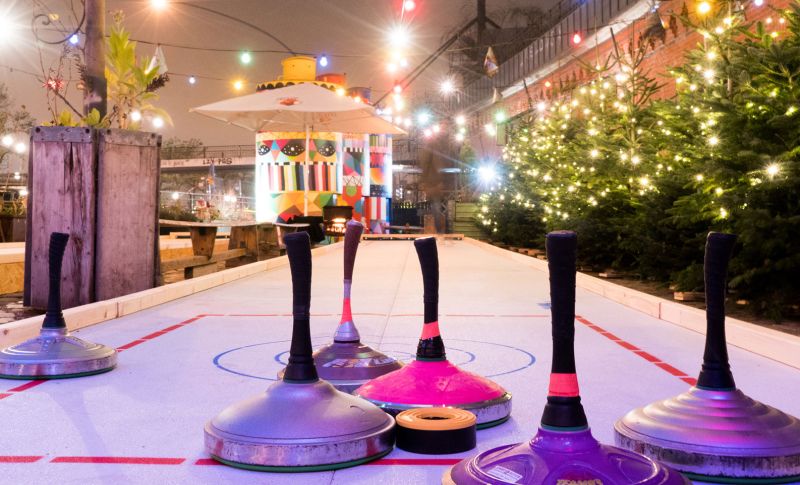 Erlebt winterlichen Spielspaß direkt an der Elbe! Unsere zwei überdachten Eisstockbahnen mit jeweils 14 Metern Länge bieten olympisches Maß, stimmungsvolle Deko und echten winterlichen Container-Flair – mitten in Hamburg auf St. Pauli.