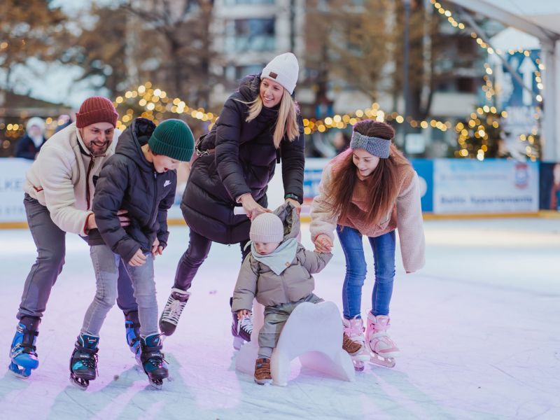 Im Herzen von Scharbeutz erwartet dich in den Wintermonaten ein besonderes Erlebnis für die ganze Familie: die EISWELT SCHARBEUTZ. Hier zeigt sich der Winter von seiner schönsten Seite, wenn du die Kufen schwingst, lachst und unvergessliche Momente schaffst. Es gibt viele Möglichkeiten, die EISWELT SCHARBEUTZ zu erleben. Mal auf den großen Echteisflächen, von denen eine sogar überdacht ist, mal auf einer Schlittschuhschleife, die durch den beleuchteten Kurpark und auf einer eigenen Brücke über den Kurparksee führt. Abends trifft man sich zum Eisstockschießen in der überdachten Eisstock-Arena oder beim Eishockey. Und wer einfach nur winterliche Geselligkeit sucht, genießt wärmenden Glühwein und Leckereien beim lichtergeschmückten Budenzauber und im EISWELT-Zelt. Die Eisfläche ist perfekt für Anfänger:innen und Fortgeschrittene gleichermaßen geeignet. Für die ganz Kleinen, die noch unsicher auf dem Eis sind, gibt es Pinguin-Laufhilfen, die Sicherheit geben und den Spaß am Gleiten wecken.