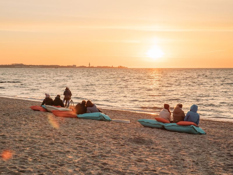 Weil das wirklich einer der schönsten Momente ist, die wir hier am Strand in der Lübecker Bucht erleben, packen wir dir noch einen oben drauf und schenken jedem, der kommt, den ersten Kaffee des Tages. Damit machst du es dir in einer der Kuschelinseln gemütlich, muckelst dich in eine unserer Fleecedecken, schaust auf’s Meer und genießt das Naturschauspiel und den Kaffee natürlich.
