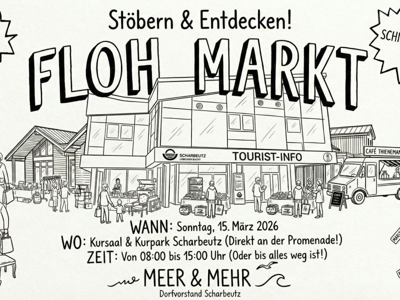Am Sonntag, den 15. März 2026, läutet Scharbeutz die neue Saison direkt an der Promenade ein. Im Kurpark und Kursaal findet von 8:00 bis 15:00 Uhr ein Flohmarkt unter dem Motto "Stöbern & Entdecken" statt.