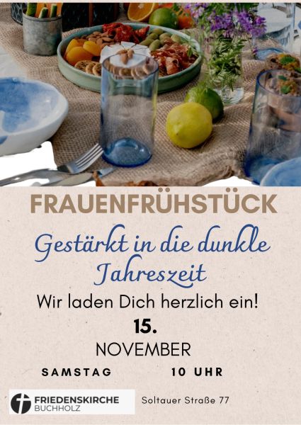 Ein inspirierender Vormittag mit leckerem Frühstück. Schön, wenn jede Frau etwas zum Buffet beiträgt und sich bei Frauenfrühstück-Friedenskirche@gmx.de anmeldet.