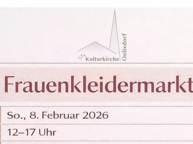 Die Kulturkirche Oelixdorf lädt herzlich zum ersten Frauenkleidermarkt ein.