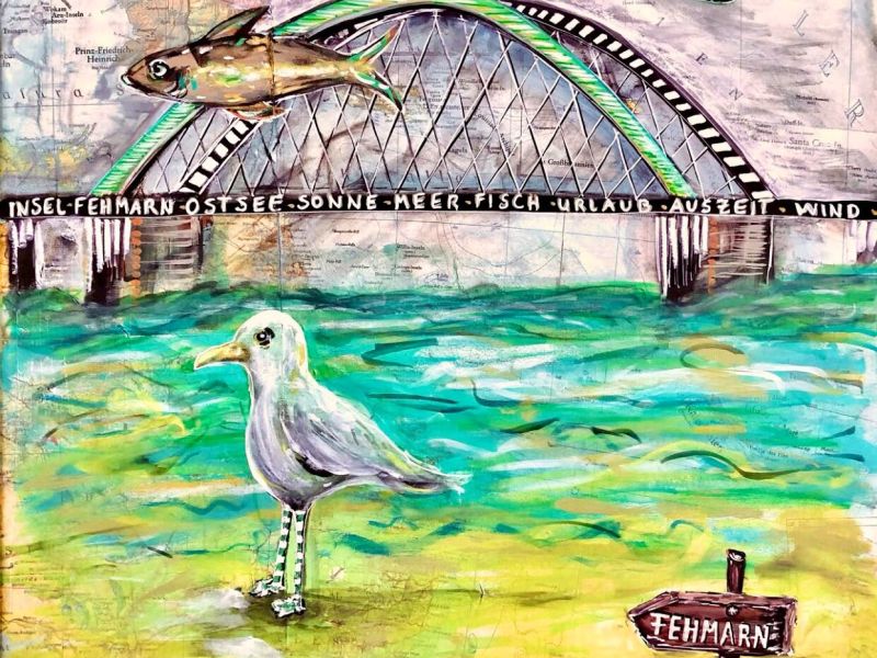 - Inspiration durch Fehmarn-Motive: Brücke, Leuteturm, Möwen, Meer, Strand und Sonne