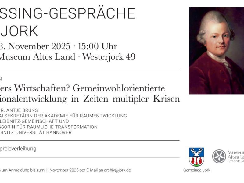 Die Gemeinde Jork lädt am Samstag, 08.11.2025 ab 15:00 Uhr zu den LESSING-GESPRÄCHEN ins Museum Altes Land ein.