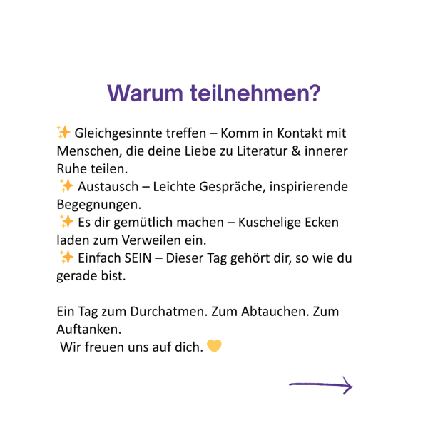 Wenn Lesen zur Auszeit wird. Wenn Worte heilen. Wenn Tee, Ruhe und Gemeinschaft dein Herz wärmen.