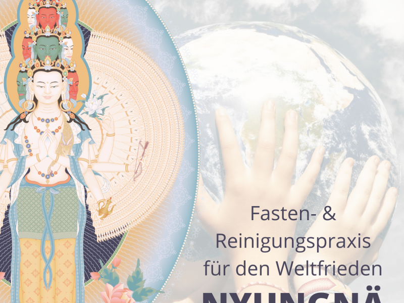 Nyungnä ist eine besonders kraftvolle Praxis, mit der wir negatives Karma des Körpers, der Rede und des Geistes reinigen und starke Verblendungen wie begehrende Anhaftung und Hass überwinden können. Außerdem empfangen wir die Inspiration und die Segnungen von Buddha Avalokiteshvara, so dass sich unsere eigenen Erfahrungen von Liebe und Mitgefühl ganz natürlich vertiefen.