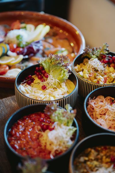 Warum sich für einen Hauptgang entscheiden, wenn man alle Drei probieren kann. Als warme Speisen habt Ihr Fleisch, Fisch, oder Vegetarisch mit verschiedenen saisonalen Beilagen zur Wahl. Das Beste zum Schluss! Abgerundet wird das feierliche Osterbrunch mit unseren Desserts, saisonale abgestimmt und für jeden Geschmack etwas dabei! Beachtet dass sich der Brunch über 3 Stunden und mehrere Gänge erstreckt. Plant bitte ausreichend Zeit ein um das Angebot voll auskosten zu können!