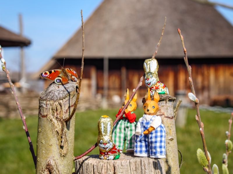 Nach dem kniffligen Frage-Antwort-Spiel warten viel bunte Ostereier darauf, im Garten des Freilichtmuseums gefunden zu werden. Nach erfolgreicher Suche gibt es als Belohnung eine süße Überraschung.