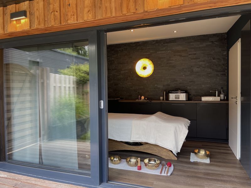 Du liegst entspannt, während die Schalen um dich herum und auf deinem Körper gespielt werden. Die Vibrationen breiten sich sanft über das Gewebe aus und können tiefe Entspannung fördern.