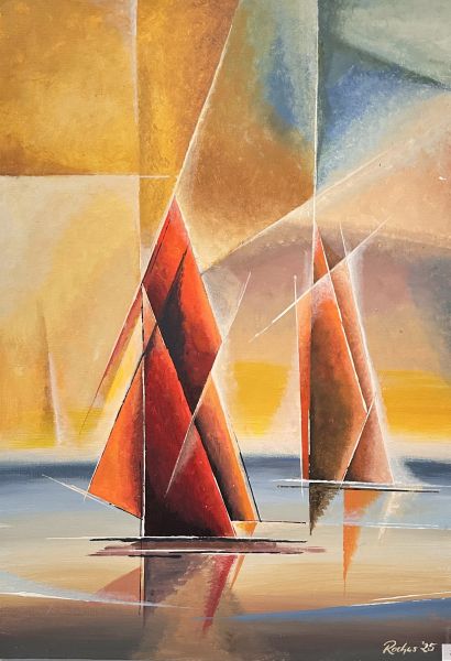 Unter dem Titel "Rochus 2025" zeigt der bekannte Eutiner Maler und Grafiker neue Werke in seinem unverkennbaren Stil, der sich durch geometrische und zugleich geschwungene Abstrahierungen realistischer Elemente beschreiben lässt. Thematisch überwiegen maritime Motive wie Küsten-Landschaften, Segelboote, Leuchttürme und Möwen. Aber auch die Eleganz tänzerischer Bewegung und dynamisch-elegante Schwäne oder Fische findet man in seinen Werken. Die Ausstellung zeigt drei verschiedene Linien seines Schaffens: klassische Ölmalerei, Werke in einer Acryl-Mischtechnik, der sogenannten Dot-Point Technik und grafische Arbeiten in monochromem Stil, die aus einer Verbindung von Rötelkreide mit einer Acryltinte entstehen.