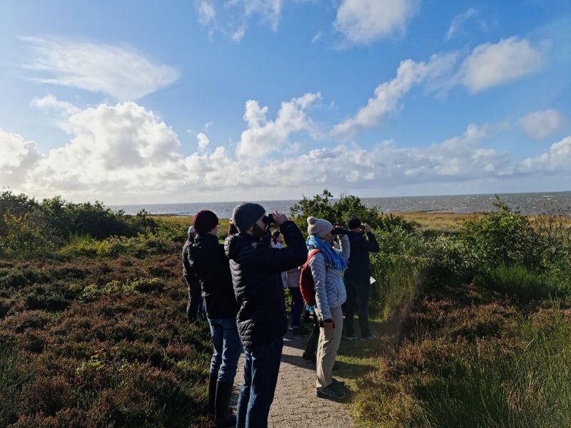 Vogelkundliche Exkursion für Menschen ohne Vorkenntnisse: Zunächst werden in einem „Trockenkurs“ Vögel des Wattenmeeres vorgestellt und Tipps zu ihrer Unterscheidung gegeben. Dann geht es zur Praxis: zu Fuß entlang des Sahlenburger Strandes bis zur Aussichtsplattform an der Duhner Heide. Von dort beobachten wir Vögel im vorgelagerten Duhner Anwachs und üben das neu erworbene Wissen. Natürlich kommt bei Zugvögeln auch das Woher und Wohin zur Sprache.