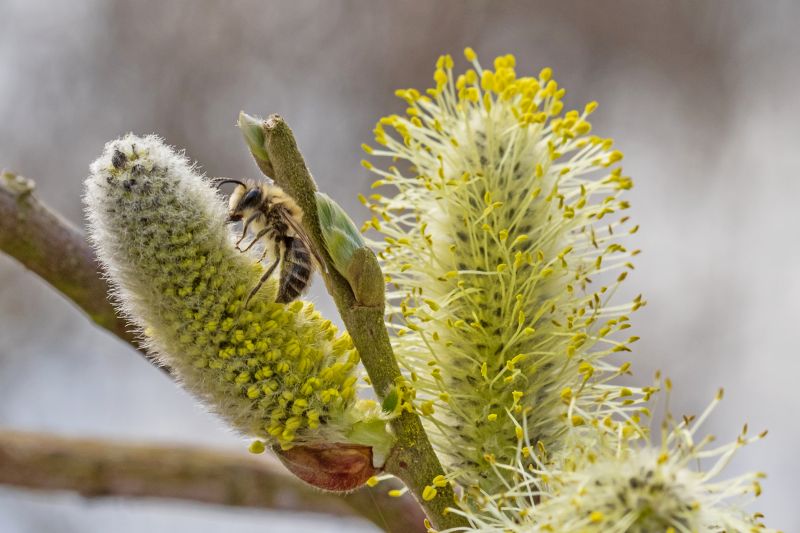 Die Frühlings-Seidenbiene auf einem Weidenkätzchen © Christine Horn