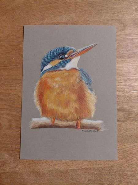 Du möchtest in netter Runde zeichnen lernen? Hier lernst du Schritt für Schritt, wie du einen schillernden Eisvogel mit Buntstiften zeichnest.