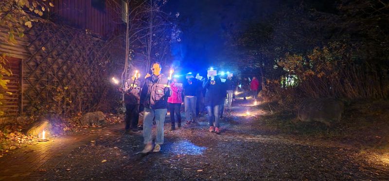 With colorful lanterns, lamps and torches through the OTTER CENTER in the evening