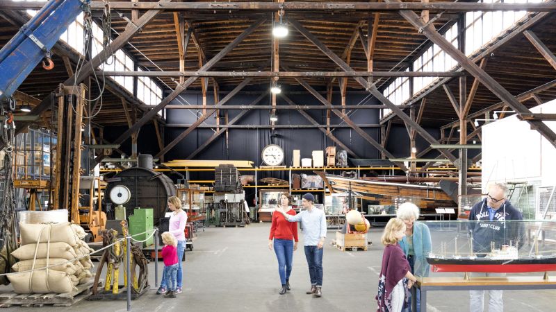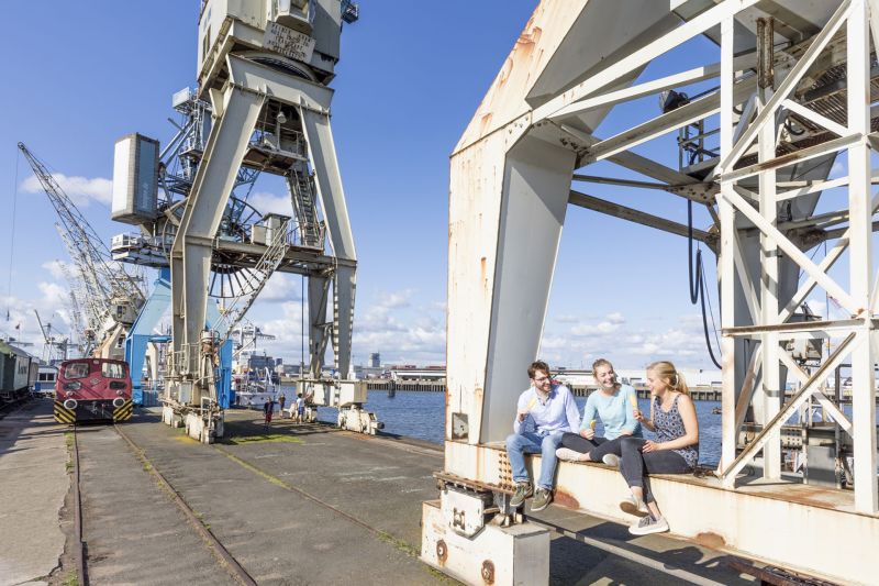 In the exhibition depot in Shed 50A, visitors can find information about goods from all over the world, ship models, or the historical development of the port facilities.
