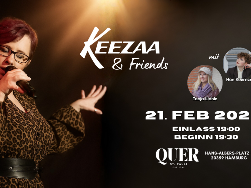 On February 21, 2026, Keezaa will celebrate the release of her debut album HERE at Quer on the Reeperbahn – and invites two musician friends to join her in creating this evening together: Han Koerner and Tanja Wahle.