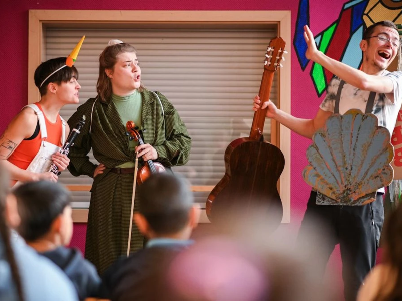 Mit Geschichten um das „Keinhorn“ bringen Sophie Kockler, Laila Nysten und Martin Schley seit 2020 interaktives Kindermusiktheater mit Klezmermusik in Kindergärten und Schulen auf die Bühne. In diesem Projekt fließen ihre Leidenschaft für Performance, Pädagogik und Komposition zusammen. Alle Musizierenden übernehmen neben der konzertanten Aufgabe auch eine schauspielerische Rolle im Theaterstück. So verleiht jedes Instrument einem der Charaktere der Geschichte seine Stimme. Tanz, Theater und Musik können fließend ineinander übergehen und beziehen das junge Publikum immer wieder in die Handlung ein. So entsteht ein immersives Musik- und Theatererlebnis für Groß und Klein.
