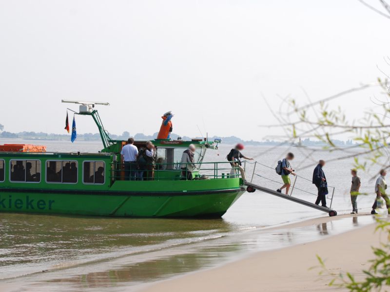 The popular flat-bottomed boat sets off from Glückstadt on a total of five trips and offers a special kind of day trip that lets you forget your everyday worries and experience a pure holiday feeling. Thanks to its shallow draft, the Tidenkieker can dock where many ships can no longer reach. Depending on the tide, the route is set spontaneously and, in addition to the trip on the Elbe, often leads through one of the small tributaries or up the Stör. An expert guide is on board who vividly explains the special features of the landscape. The highlight of every trip is docking on one of the Elbe islands, usually Schwarztonnensand or the Brammer Bank.