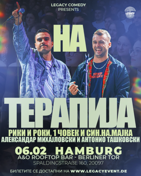 Antonio Taškovski (1 Man) – one of the most authentic voices of the new generation. His style is direct, modern, and energetic, with humor drawn straight from real life. Antonio speaks without filters, with a sharp mind and clear punchlines, creating performances in which the audience easily sees itself.