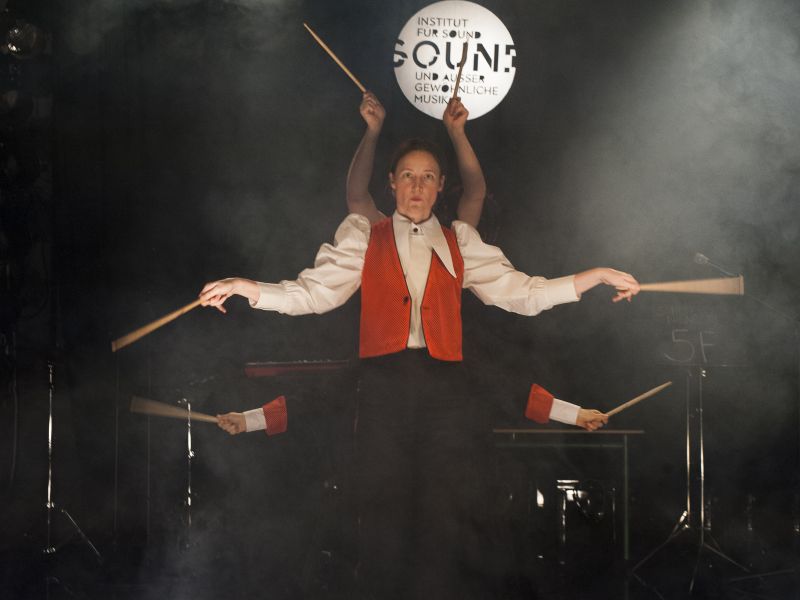 To find out, the institute then invites the school to the theater for a school concert. Together with sound artists, the research theater team performs the school's sound—complete with concert pianist, school desk, megaphone choir, and ringtone.