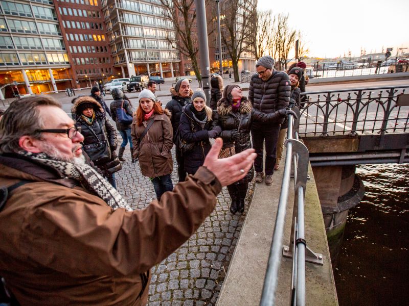 Experience the fusion of traditional and modern urban development during the Speicherstadt and HafenCity adventure tour. We start at the Kehrwiederspitze and explore HafenCity together, which is internationally known for its architectural buildings such as Hamburg's new landmark, the Elbphilharmonie. We then head to the traditional ship harbor from where we approach the breathtaking Speicherstadt. What is still stored in the brick warehouses today? Our well-informed and friendly tour guides will be happy to provide you with interesting insider knowledge about this important trading center, which is known for, among other things, coffee, tea and oriental carpets. During our tour through the UNESCO World Heritage Site of Speicherstadt, the gigantic and largest contiguous warehouse complex in the world, we also discover the fairytale Fleetschlösschen and the most photographed building in the Speicherstadt, the moated castle. We make another stop at the Speicherstadt town hall and admire its extraordinary architecture, characterized by the typical neo-Gothic bricks. Finally, we end our two-hour tour at the world-famous Chilehaus in the Kontorhausviertel. We guarantee a unique tour between modernity and world cultural heritage along the Fleete and its numerous bridges with mysterious insights and views. Let yourself be enchanted by a rare idyll in the middle of the big city of Hamburg and accompany us on this unforgettable tour in a relaxed atmosphere!