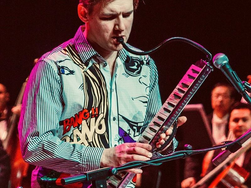 Here, a zany jazz trio fronted by the Dane Rune Thorsteinsson, proficient in all kinds of instruments from the mouth-blown melodica to body percussion. There, the award-winning young symphony orchestra »Ensemble Reflektor« full of energy. The result is a thrilling concert with a cool crossover that is simply fun – especially since the audience gets to join in again and again.