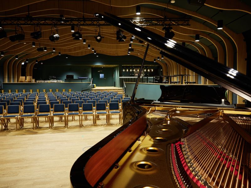 Im Sommer 2021 wurde die JazzHall am Ufer der Außenalster eröffnet. Der moderne Veranstaltungsraum bietet Platz für rund 200 Personen und wird die neue Spielstätte für Konzerte der Studiengänge Jazz sowie nationale und internationale Künstler:innen.