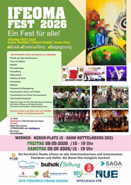 OPEN-AIR-BÜHNE & LIVEBANDS – Open Air stage mit The Versatile Band Hamburg, Lola Band, Buhne art & Shok (Grazia), Chora Mixta, Wonder cultural group, Dj: Awilo, Moderatorin: Talk like Esty/lisa Esosa