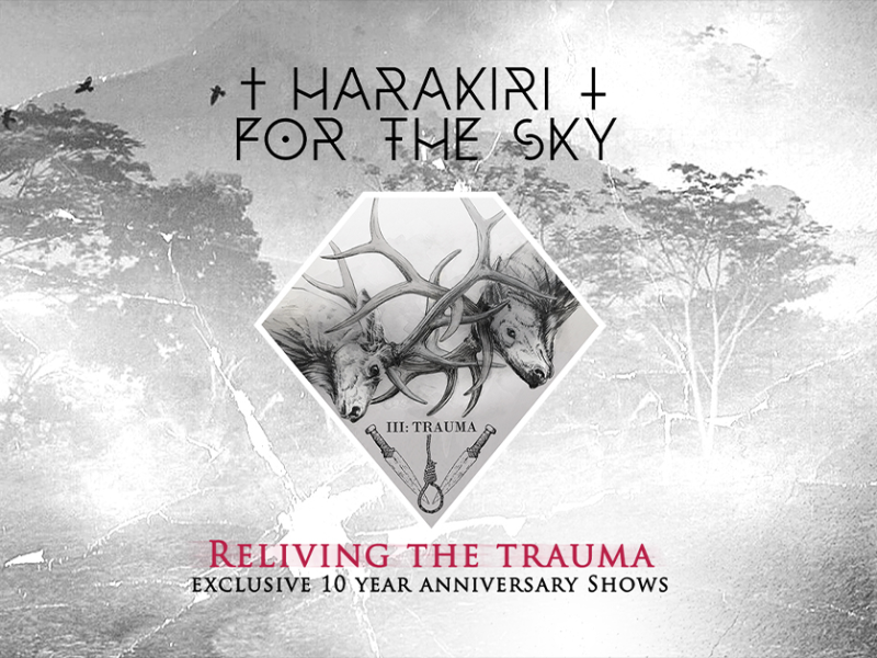 Nach ausverkauften Shows zu ihrem neuen Album Scorched Earth wird es Zeit für eine Reise zurück in die Vergangenheit: 10 Jahre nach ihrem bahnbrechenden Album III: Trauma widmen Harakiri for the Sky dem Album drei exklusive Headline-Konzerte, bei denen das Album in voller Länge präsentiert wird. III: Trauma gilt nicht nur als ihr Durchbruch und großer Schritt in ihrer internationalen Karriere, sondern mittlerweile als weltweiter Meilenstein des Post Black Metal und Fan-Favourite. Nun gibt es die einmalige Gelegenheit, das Album erstmals in Gänze live zu erleben.